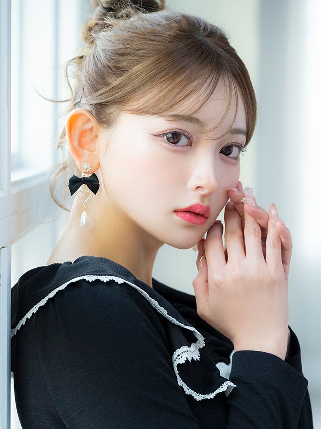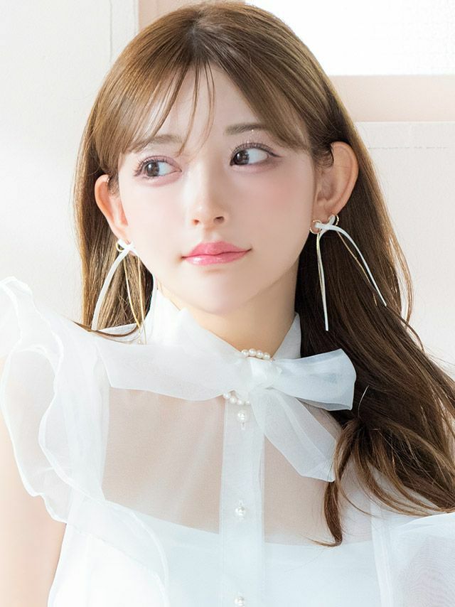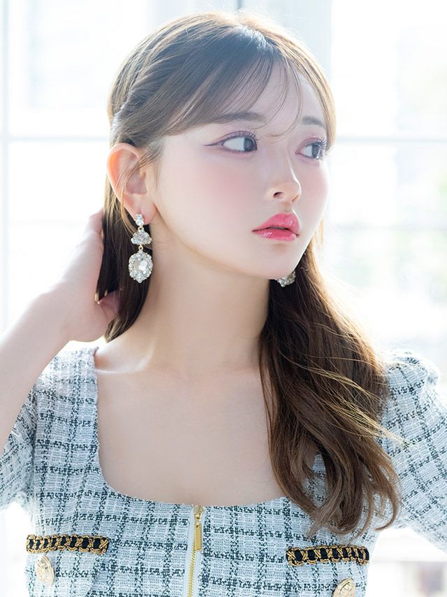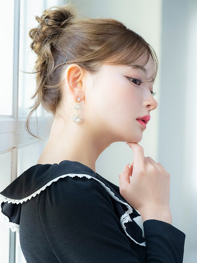 小柄な方は縦ラインを意識したデザインがおすすめです。揺れ感のあるアクセサリーは全体をすっきり見せてくれます。