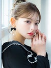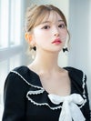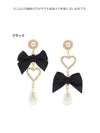 ハートとリボン、パールビジューでキュートなディティールたっぷりのピアス。アシメデザインで左右違う印象を楽しめる。