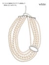 ボリュームたっぷりなパールネックレス。キラキラ煌めくビジューを飾ったフレームから、大小のパールをドレープ風に仕上げた華やかデザイン。