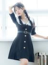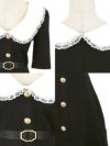 - [韓国ドレス] フリル襟デザインベルト付きゴールドボタン半袖フレアミニドレス