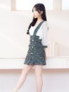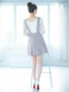 - サロペット風 オルチャン ホワイト フラワーレース 袖あり パフスリーブ ハイウエスト切替 フレアミニドレス