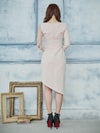 ヌーディーカラーで色っぽ大人女性感溢れる、sexyなミディアムワンピース。アシンメトリーデザインが個性的なおしゃれポイント。
