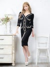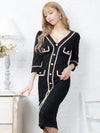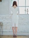 スッキリとしたタイトラインで魅せる、シンプルで上品なミディアムドレス。Yラインに沿ったフリンジのデザインが、大人エレガントな印象に。