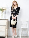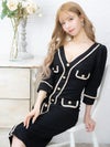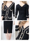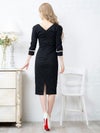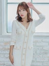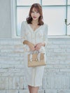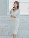 スッキリとしたタイトラインで魅せる、シンプルで上品なミディアムドレス。Yラインに沿ったフリンジのデザインが、大人エレガントな印象に。