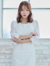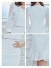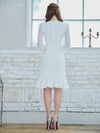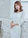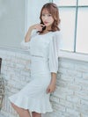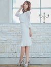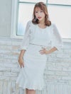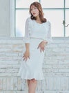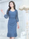袖のシースルーから透ける肌が大人上品な一着。裾のフリルがエレガントで、可愛さをプラス。同伴でも着用可能。