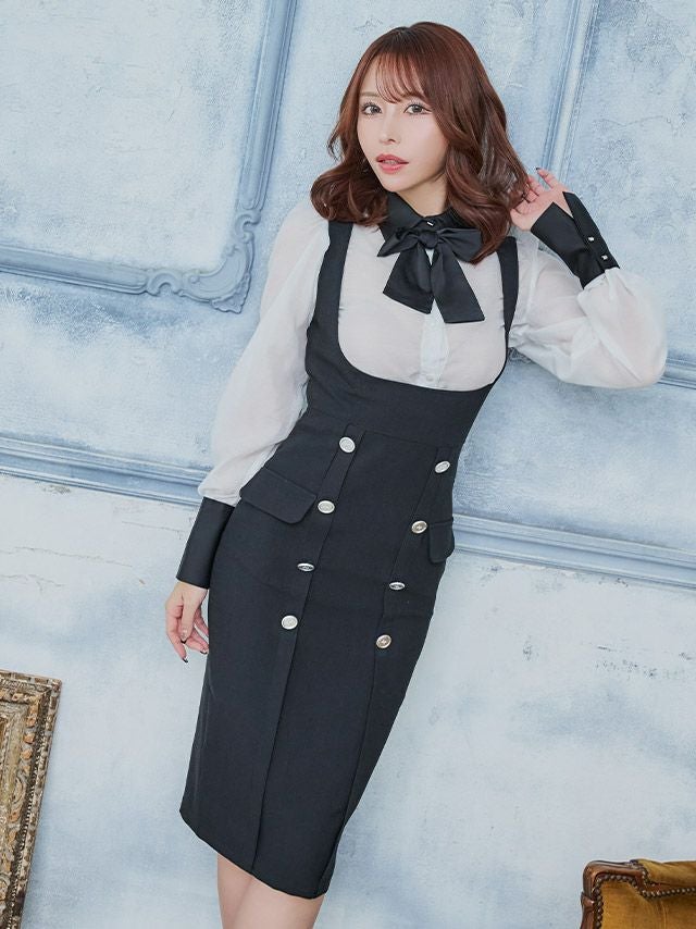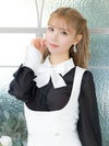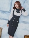 センターリボンが目を惹く可愛さの、ブラウス×ワンピースのセットアップドレス。美スタイルをメイクしてくれるタイトシルエットが甘くなりすぎず、大人可愛いを演出。