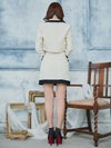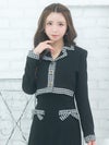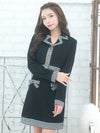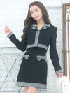 ジャケット付きのスーツドレス。千鳥柄のパイピングとリボンが可愛い。ワンピースだけでも着用でき、大人上品な1着。