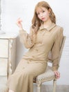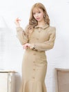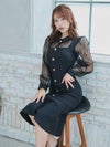 襟デザイン シースルー 長袖 スリット マーメイド 膝丈ドレス