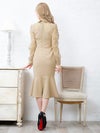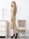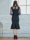 4. 襟デザイン シースルー 長袖 スリット マーメイド 膝丈ドレス