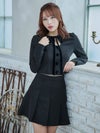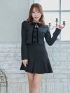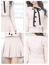 プリーツのフレアドレスがアイドル級に可愛い。リボンっとボタンがポイント。淡いピンクで上品な1着。