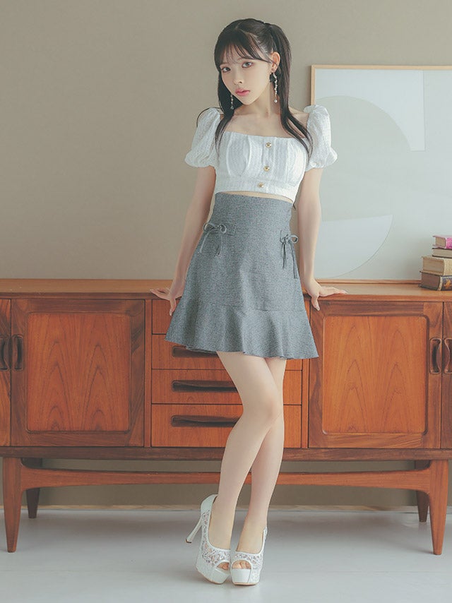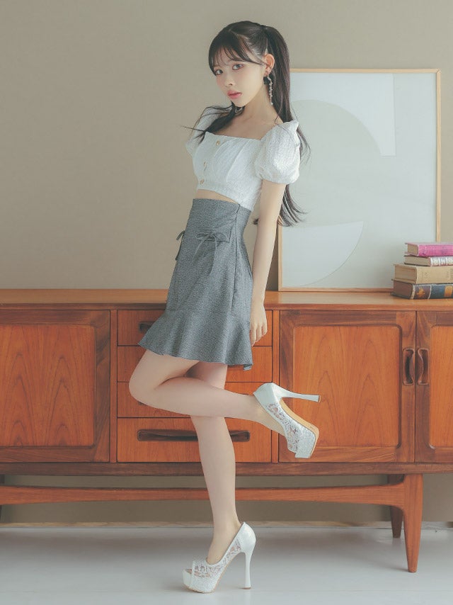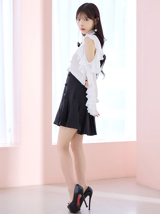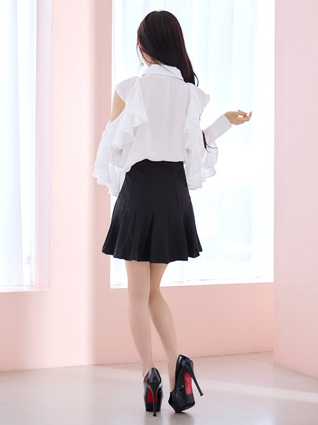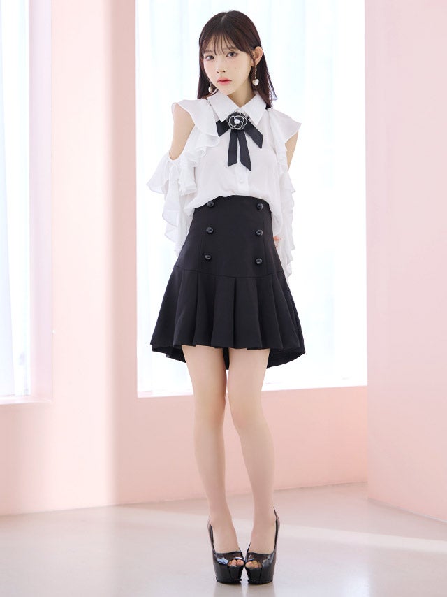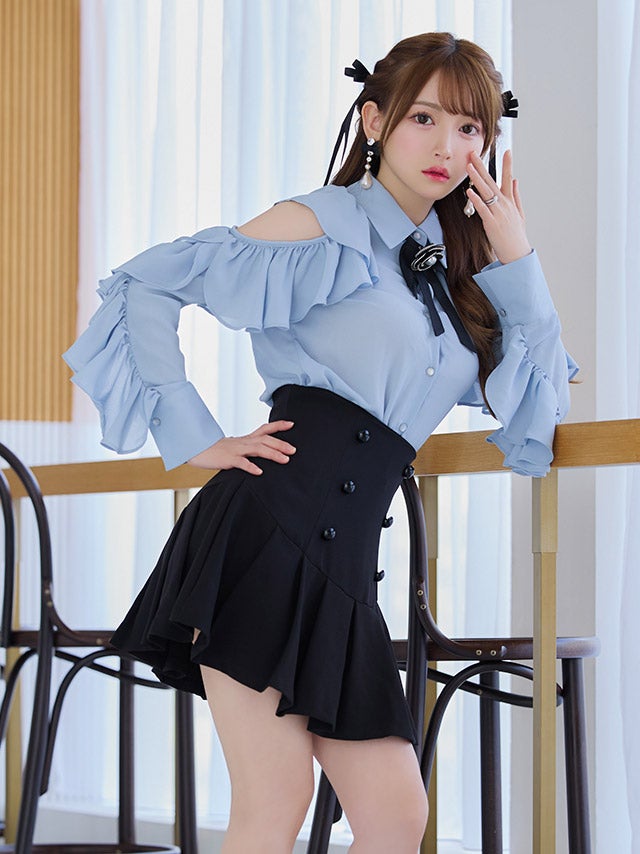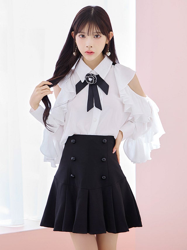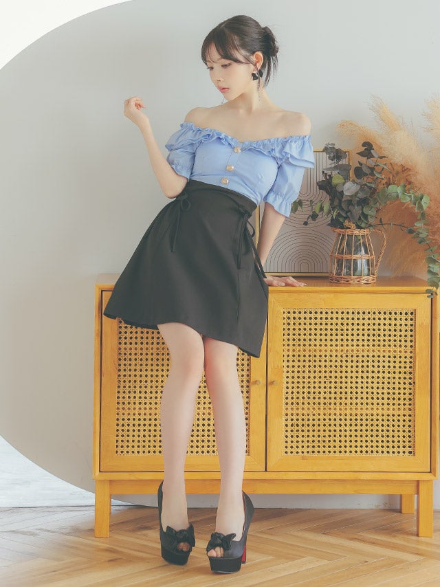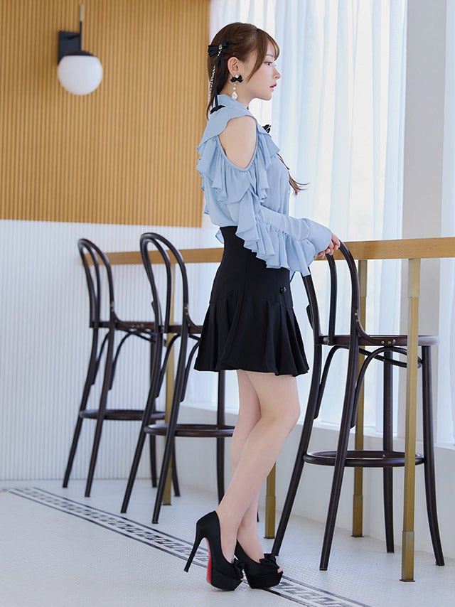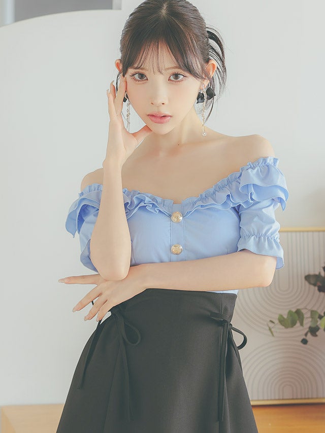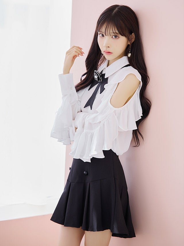 肩周りを華やかに見せつつ、細見え効果も抜群!