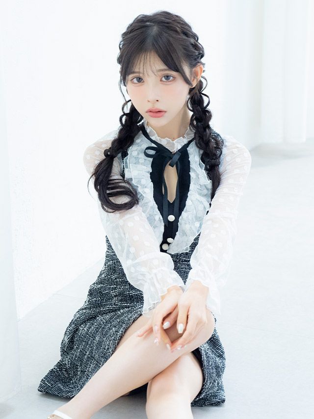 [韓国ドレス] キラキラビスチェ襟つき長袖シアーシャツフレアミニスカートセットアップ