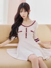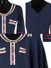 普段のお出かけにも着られる、美脚フレアミニ。目を引くレッドのラインで、レトロガーリーに着こなせる。