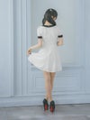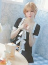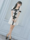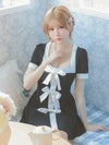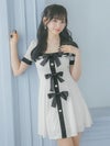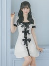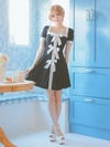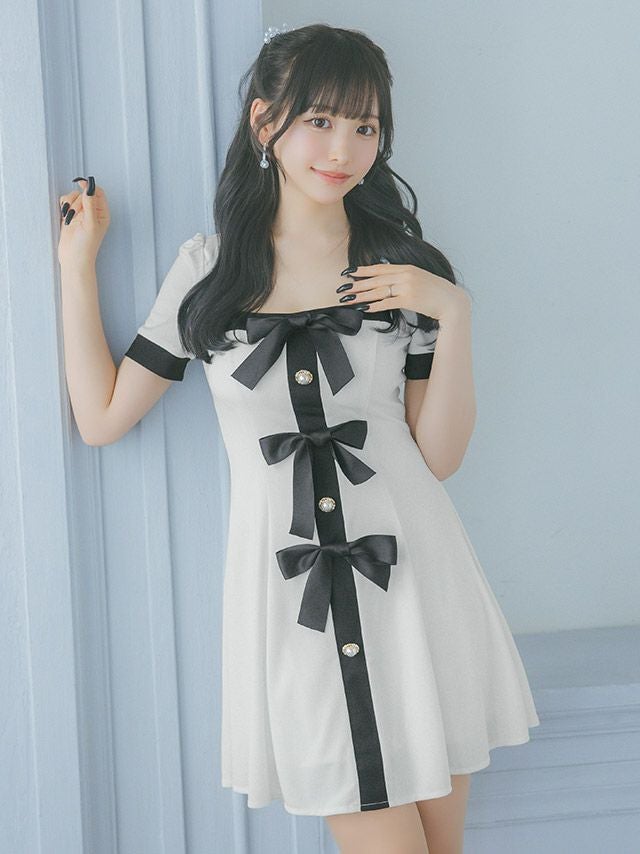 キュートなリボンデザインもモノトーンでちょっぴりオトナに。メリハリのあるパイピングデザインで、美スタイルも叶える。
