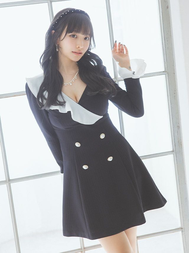 ホワイトフリルがアクセントのアシメデザインワンピ。普段のお出かけにも着られて、同伴やアフターにもぴったり。