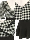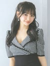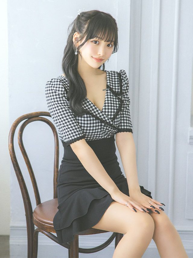 襟付きデザイン×ギンガムチェックで、クラシカルなかわいさを演出。深めのVネックから谷間魅せをかなえて、ハイウエストでスタイルアップ効果も。