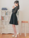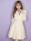 - 襟デザインカシュクール長袖パフスリーブラメ入りニットフレアミニドレス