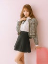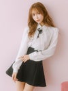 上品なかわいさを演出する、万能セットアップ。スカート風のパンツなので、安心して着用できる。