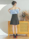 爽やかなブルーとリボンスカートがキュートなドッキングワンピ。トップ部分は2wayで着こなせて、ウエスト細魅せ効果もバツグン。