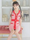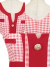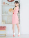 レッドカラーが目を引くポップでキュートなノースリワンピ。太めのパイピングデザインで、スタイルアップも叶える。