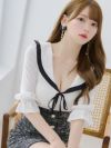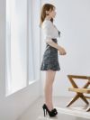 - ツイード パフスリーブ 袖あり チェック柄 ミニドレス