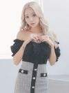 #ぴょな #オフショル #ツイード #タイトドレス #ウエスト切替 #ウエストカバー #モノトーン #セクシードレス #二の腕カバー #ブラック
