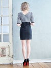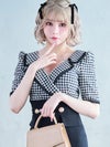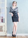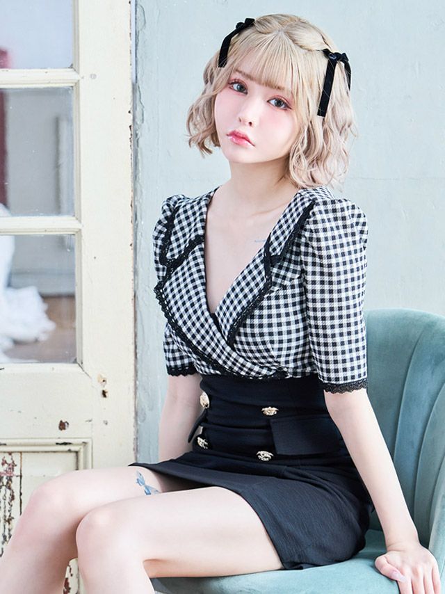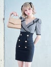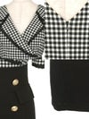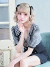 - [韓国ドレス] 袖ありギンガムチェック柄レース襟デザインテーラードカラータイトミニドレス
