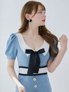 大きめの襟とネックリボンが清楚ガーリーなミニワンピ。同伴やアフターはもちろん、普段のお出かけや参戦服にも。