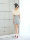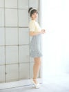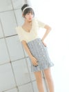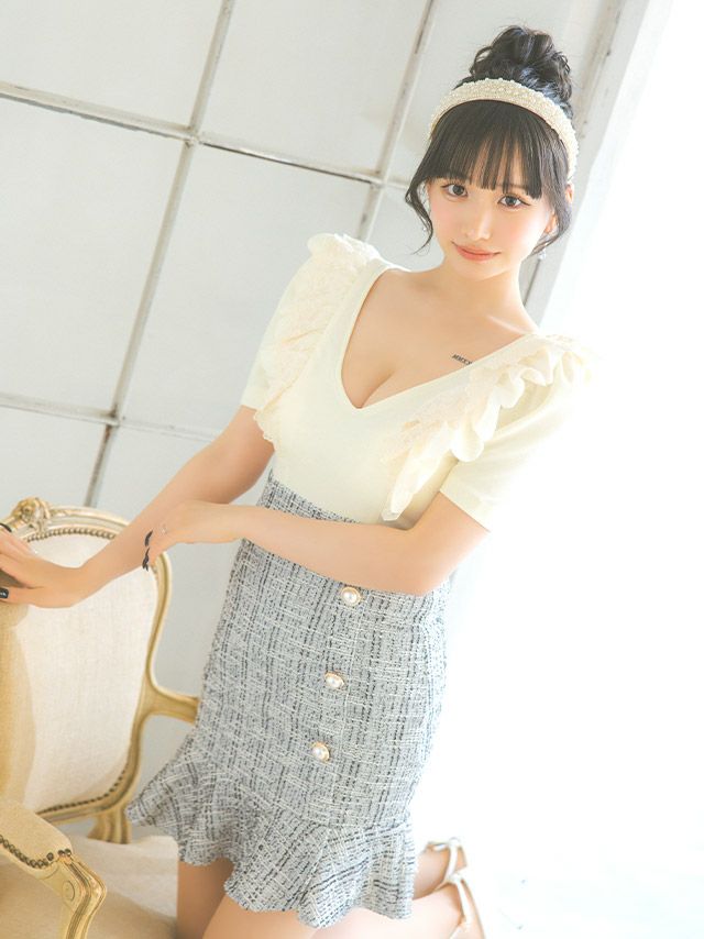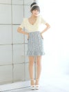 - [韓国ドレス] 袖ありフリルレース切り替えツイードパールボタンタイトミニドレス