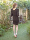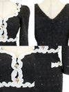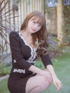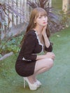 - [韓国ドレス] モノトーンパイピングニットゴールドボタン袖ありタイトミニドレス
