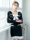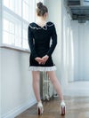 - [韓国ドレス] 長袖パイピングレース裾フリルモノトーンタイトミニドレス