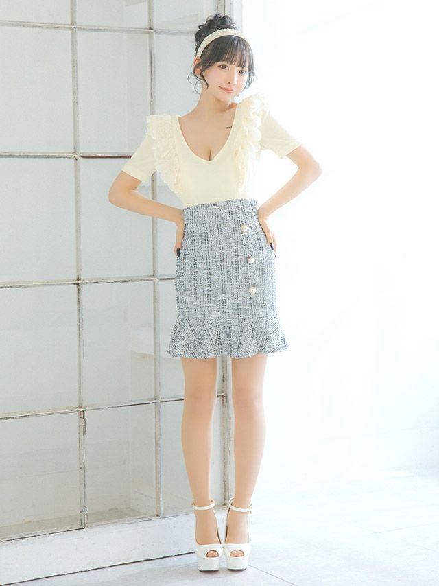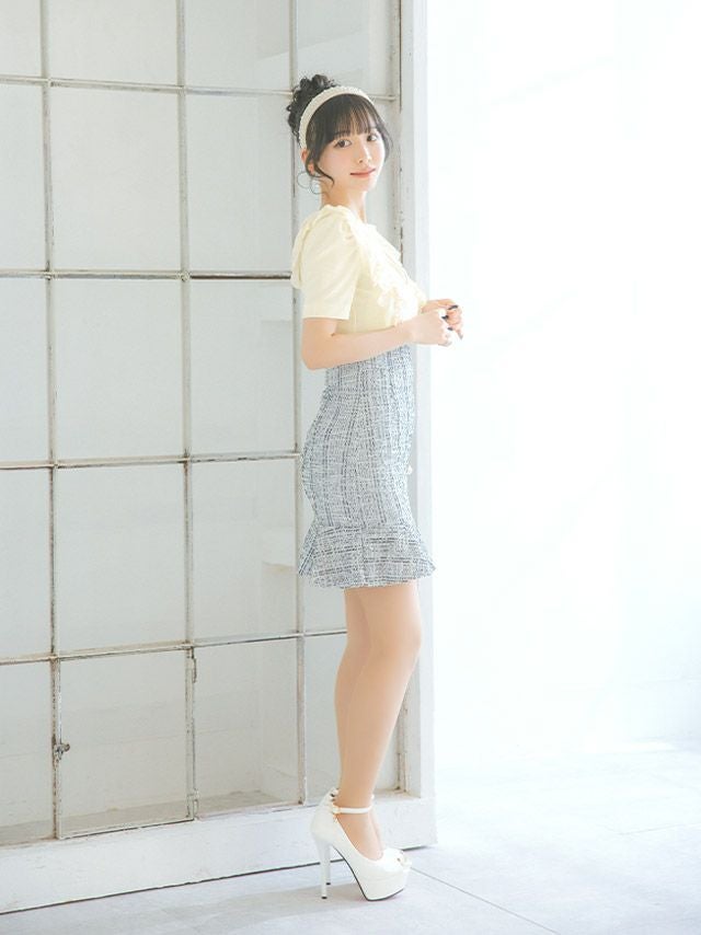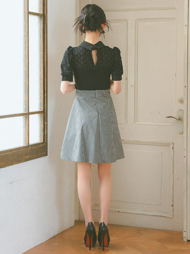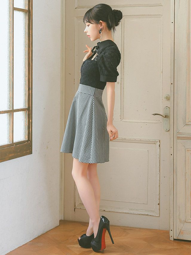 ウエスト切り替えは上の位置にあるデザインを選んでいただくと、ラインがスッキリ見えます。