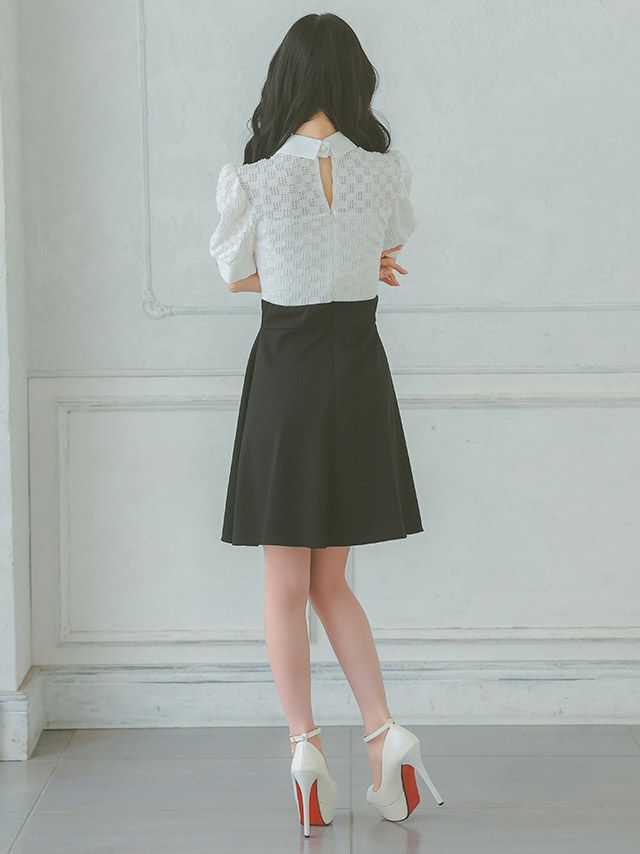 0件 レビューを見る ▷ 他の画像を見る カットアウトがあざとかわいい★ ネックリボン 襟デザイン 半袖 バストカット 切り替え モノトーン フレアミニドレス ¥ 13,200 税込 詳細を見る お気に入りに登録する