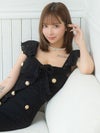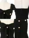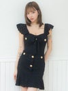 色気抜群のマーメイドデザイン。落ち着いたブラックのカラーにゴールドボタンが映える。万人受け間違いなしのドレス。