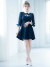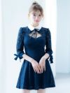 #黒崎みさ #襟デザイン #ネックリボン #フレアドレス #谷間魅せ #ネイビー #ガーリーワンピ #二の腕カバー #七分袖