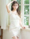 深めのVネックでレディな色気をさりげなく引き立てる。レース袖×フリルの甘さに、ウエストリボンがくびれを綺麗にメイク。上品さと可愛さを両立した、同伴にも営業にも使いやすい一着。