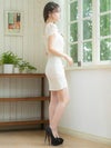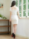 #半袖ドレス #ベージュドレス #リボンドレス #ネックリボンドレス #黒崎みさ #ガーリードレス #谷間魅せ