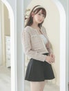 多種多様な糸を織り込んだ、ツイード風ボレロカーディガン。お洒落な縁取りデザインとパールのフェイクボタンを飾り、羽織るだけで主役級の可愛さを実現。