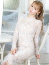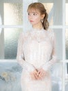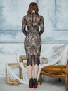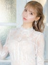エレガントで高級感溢れる総レースドレス。落ち着きのある膝丈とフリルネックが上品な印象をしながら、スリットで色気もプラスしてくれる。