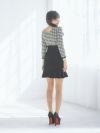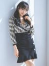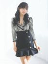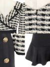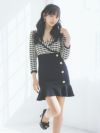 - 袖あり テーラードカラー パイピング チェック柄 切り替え 裾フリル タイトミニドレス