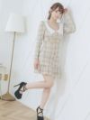 #黒崎みさ #ガーリーワンピ #ウエストカット #二の腕カバー #チェック柄 #マーメイド #襟デザイン #長袖 #ブラック