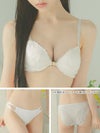 着脱楽々なフロントホックランジェリー。素肌を明るく魅せてくれる清楚なホワイトレースが、程よく甘くフェミニンな印象に。