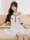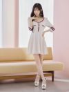 #緩苺 #フレアドレス #ホワイト #美脚魅せ #ガーリーワンピ #二の腕カバー #五分袖