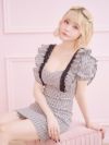 #戦慄かなの #タイトドレス #モノトーン #チェック柄 #ガーリーワンピ #二の腕カバー #ブラック #半袖