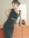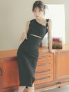 #緩苺 #セクシードレス #膝丈 #ブルー #タイト #ウエストカット #ノースリーブ