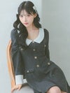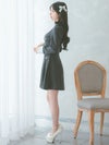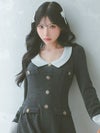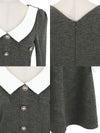 #緩苺 #襟デザイン #グレー #ガーリーワンピ #フレアドレス #二の腕カバー #長袖