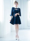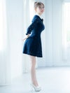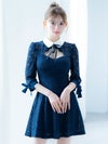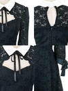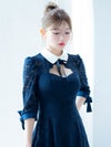 - [韓国ドレス] 襟デザインネックリボン総レース袖ありフレアミニドレス