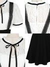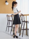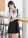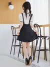 #緩苺 #サロペット #ネックリボン #ガーリーワンピ #フレアドレス #二の腕カバー #半袖 #モノトーン