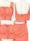 鮮やかなオレンジカラーでフレッシュな印象に。ウエストカットデザインで色気も忘れない。好印象間違いなしのドレス。