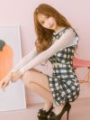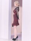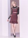 - [韓国ドレス] 長袖ウエストカット裾フリルネックリボンガーリーチェック柄タイトミニドレス
